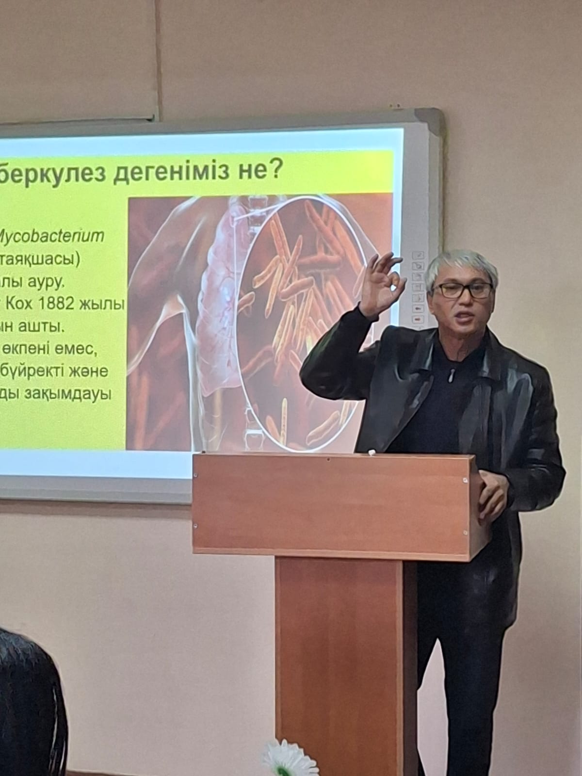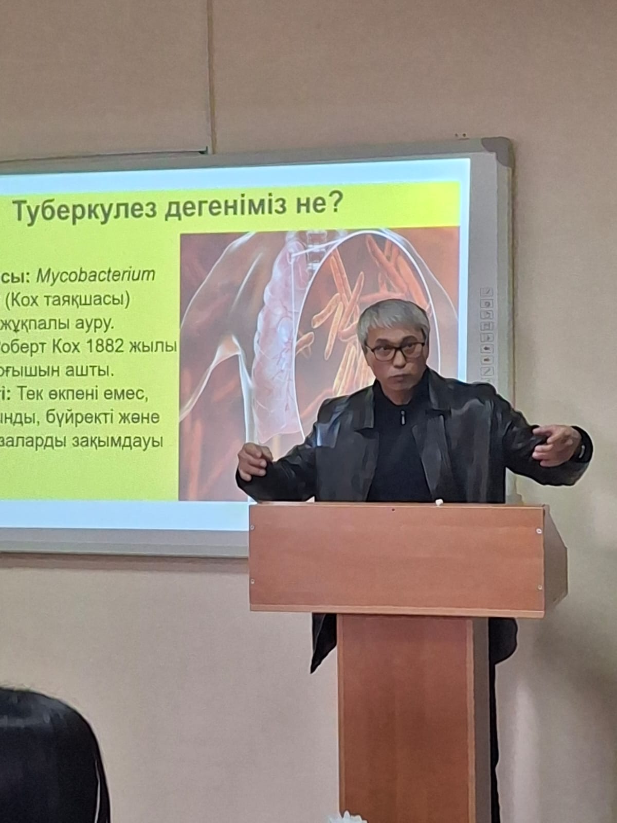 24 ақпан - 24 наурыз аралығында өтетін «Дүниежүзілік туберкулезге қарсы күрес" айлығына орай «Иә! Біз туберкулезді жеңеміз! Қазақстанның көшбасшылығымен, инновация және халықтың күшімен!» атты ұран аясында 26 ақпан 2026-шы жылы Білім кәсіби гуманитарлық-техникалық колледжі студенттері арасында «Туберкулез дегеніміз не? Алғашқы белгілері, емі, аурудың алдын алу» тақырыбында ЖОФО-ның фтизиатры Е.М.Сулейменов дәріс өткізді (қамтылған студенттер саны - 75).
